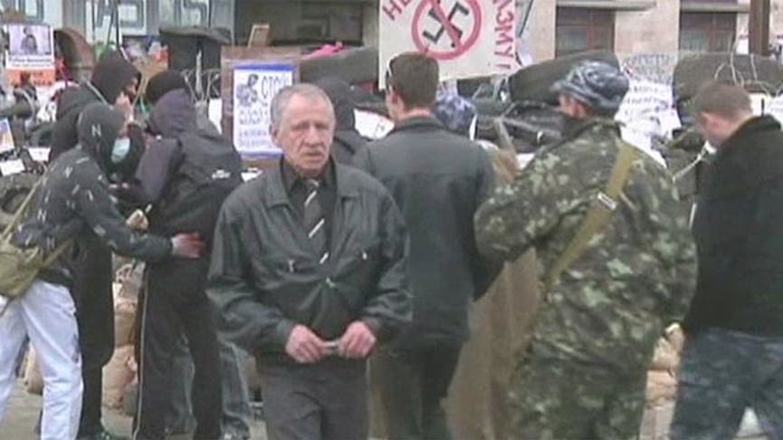 Then, last week, after a pro-Russian mob took over the town's police station, a video posted on a local news organization's website showed him parading in fatigues in front of a couple dozen local police, identifying himself as a lieutenant colonel in the Russian army and telling them they had a new chief. Ukrainian officials allege he was tasked earlier this month with seizing state-security buildings in Donetsk region, then taking the police station in Horlivka.