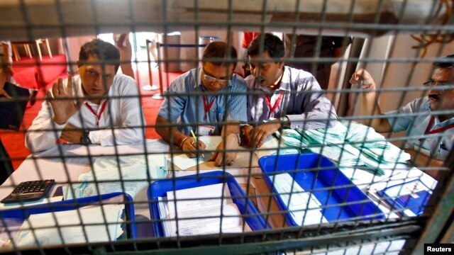 The Election Commission of India says a record 66 percent of the country's 815 million registered voters cast their ballots during the national election. Voting began last month.